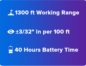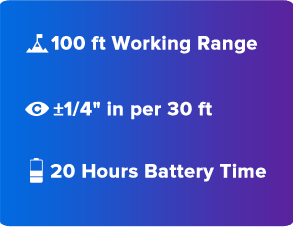 - Self-leveling with an accuracy of ±1/4″ per 100′